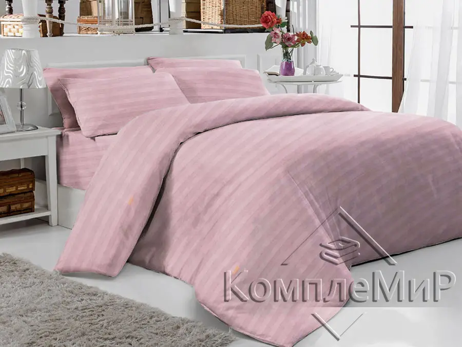 Подробнее о Комплект постельного белья (двуспальный) из сатина - страйп - Розовый ›››Представленный продукт характеризуется особой плотностью, гладкостью и блеском. В отличие от бязи и поплина сатин имеет особую структуру переплетения нити, придающую главную особенность этого материала – блеск, при котором одна сторона материала состоит из плотных нитей, а лицевая из более тонких, закрученных. Сатин относится к категории тканей премиум класса, имеющей плотность выше 120 г/м2, изготовленную из 100 % хлопка.