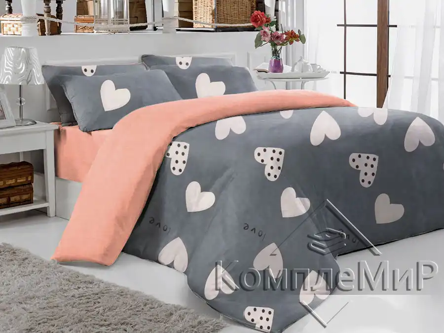 Сердца-Bib-Персик - ткань-компаньон бязь